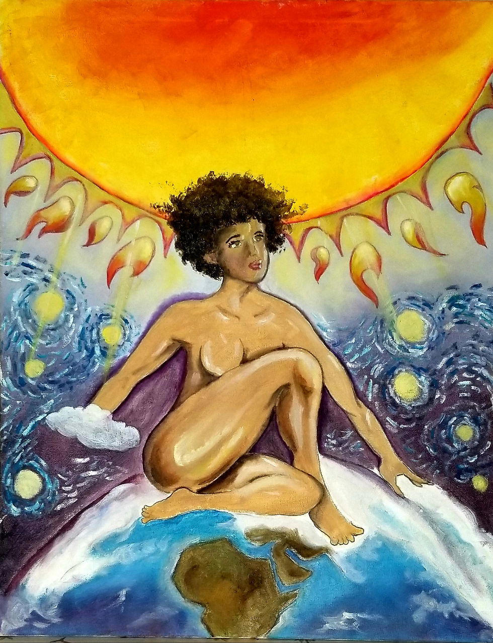 My work explores myth, identity, and transformation through figurative symbolism. Drawing on elemental imagery—fire, earth, light, and the human form—I use the body as a vessel for psychological and cosmic reflection. Figures often exist between worlds: grounded yet celestial, vulnerable yet powerful, caught in moments of emergence or quiet introspection.